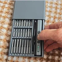 The set comes with a magnetic storage case that keeps all 64 precision bits organized. The case has a pop-up mechanism for easy access and keeps everything neatly in place.